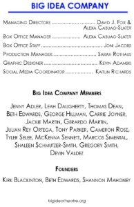 big idea theatre is a 501(c)(3) non-profit theatre company