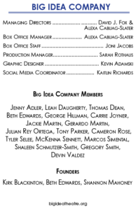 big idea theatre is a 501(c)(3) non-profit theatre company