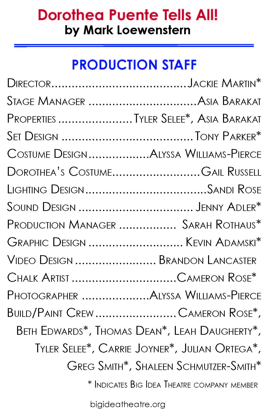 big idea theatre is a 501(c)(3) non-profit theatre company