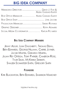 big idea theatre is a 501(c)(3) non-profit theatre company
